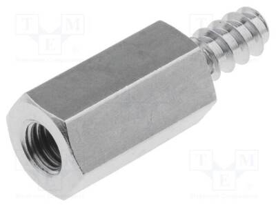 Vidalı aralayıcı kovanı; 10mm; İç diş: M3; Dış diş: ST2,9; pirinç