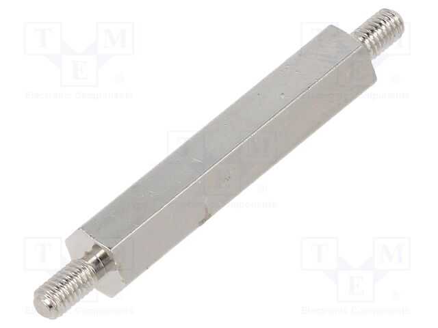Vidalı aralayıcı kovanı; 30mm; Dış diş: M3; altı köşe; pirinç