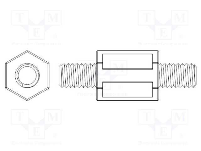 Vidalı aralayıcı kovanı; 35mm; Dış diş: M8; altı köşe; çelik