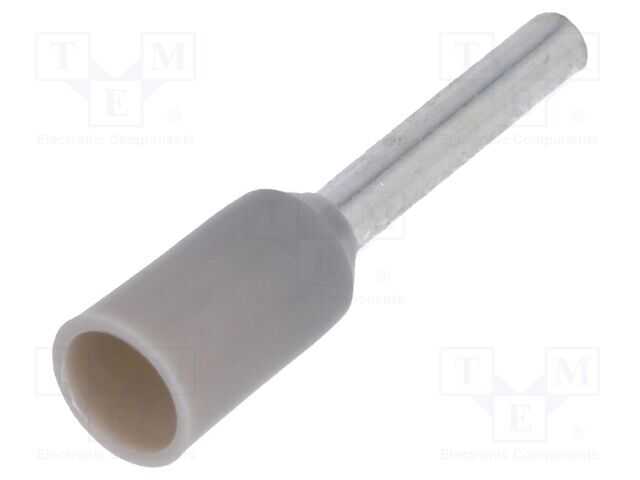 Uç: bağlamalı yüksük; yalıtımlı; bakır; 0,75mm2; 8mm; kalaylı; gri