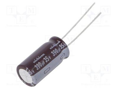 Kapasitör: elektrolitik; low ESR; THT; 390uF; 35VDC; Ø10x22mm; ±20%