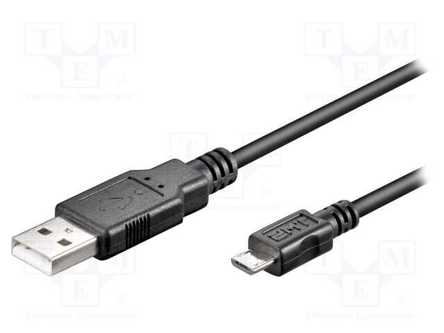 Kablo; USB 2.0; USB A fişi,USB B micro fiş; 5m; siyah; Damar: Cu