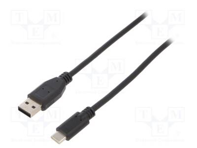 Kablo; USB 2.0; USB A fişi,USB C fişi; nikel kaplı; 0,5m; siyah
