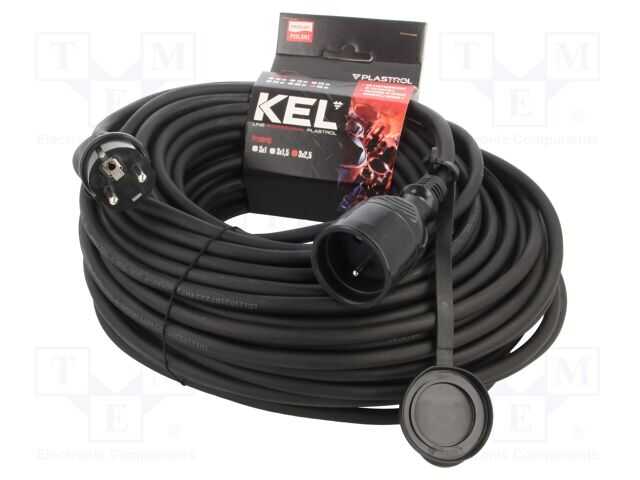 Uzatma kablosu; 3x2,5mm2; Soket: 1; kauçuk; siyah; 40m; 16A