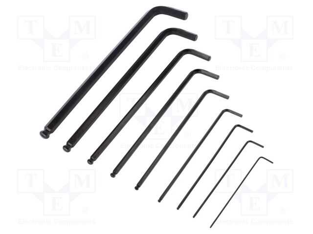 Anahtar seti; altıgen anahtar,küresel; Krom-vanadyum çeliği
