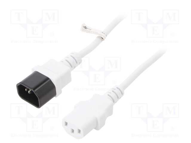 Kablo; IEC C13 dişi,IEC C14 erkek; PVC; 1m; beyaz; 10A; 250V