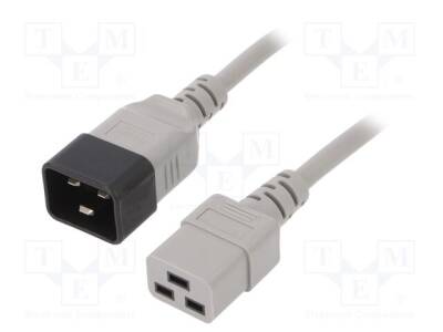 Kablo; 3x1,5mm2; IEC C19 dişi,IEC C20 erkek; PVC; 1m; gri; 16A