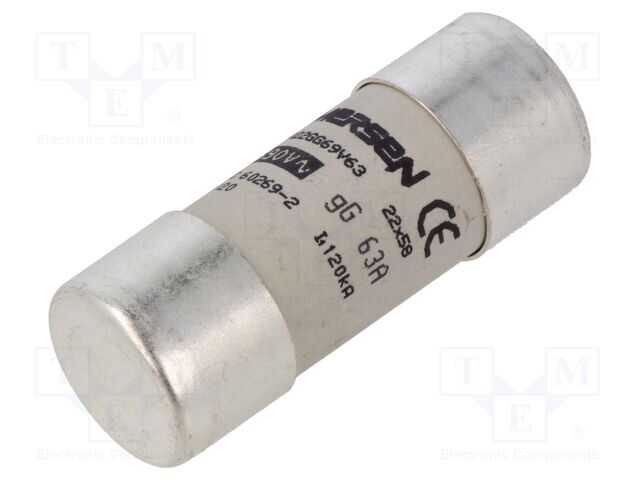 Sigorta: sigorta; 63A; 690VAC; gG; seramik,silindirik,endüstriyel